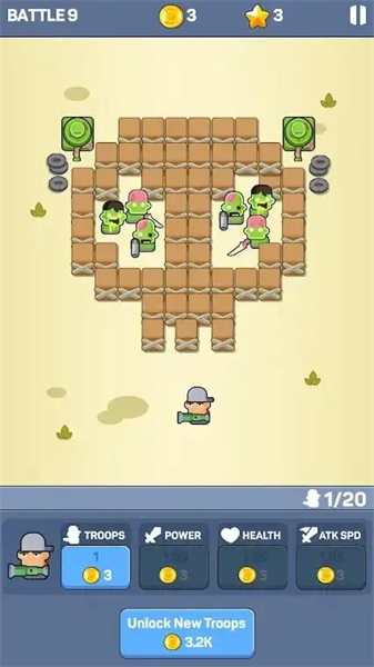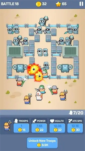战士防御是一款有趣的策略塔防类游戏,游戏开始,你将置身于一片危机四伏的战场,你可以看到敌人从远处缓缓逼近,他们的数量众多,形态各异,此时,你需要迅速做出决策,合理布置防御塔和战士,以阻止敌人的前进,快来下载体验这场刺激的对决吧。